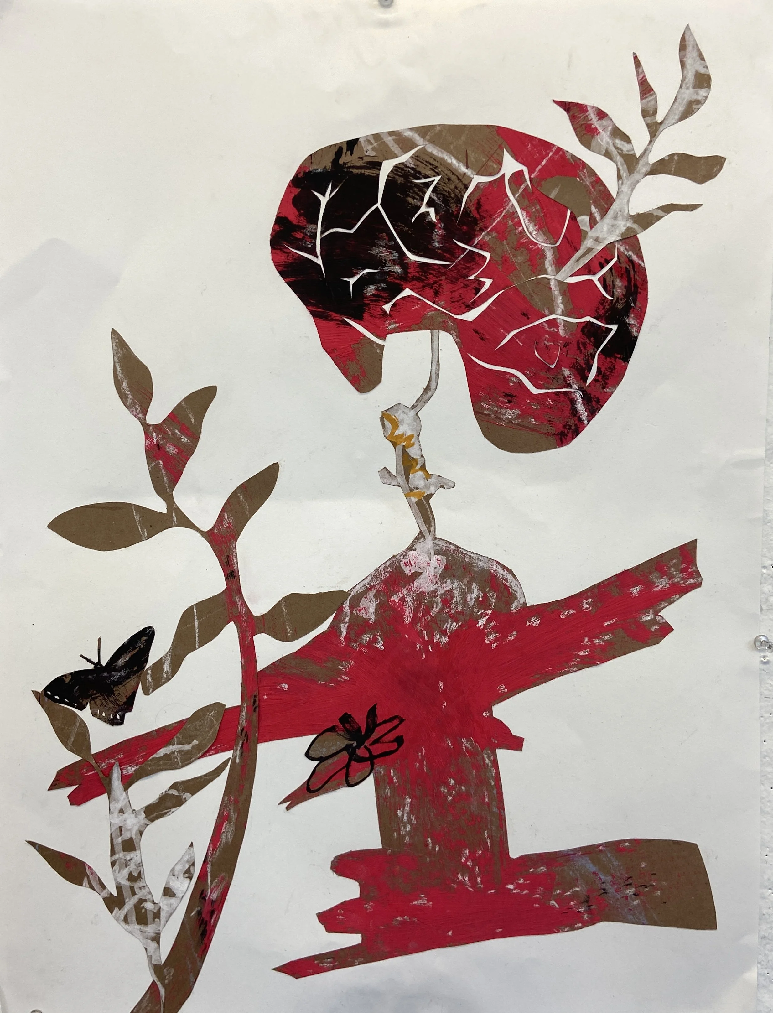Collage is a technique I have explored that allows me to use past projects that didn’t become fully realized and find a new angle or story to tell with those bits. I haven’t created too many of these pieces, but I have found it to be a wonderful way to get through art block and use old materials in new ways.